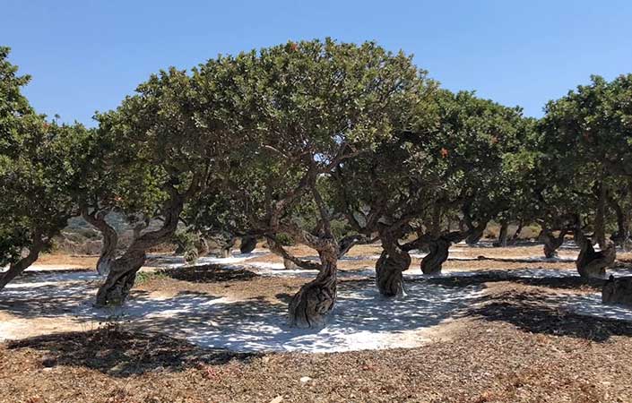 The trunks feature “kentrima,” the characteristic small incisions from which the “tears” flow. As the mastic solidifies on the tree or falls onto the clean soil, it releases its distinct scent throughout the area. This landscape and traditional agricultural process exist nowhere else in the world.